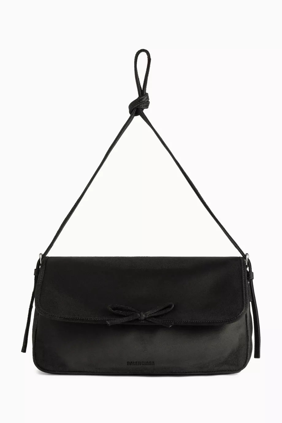 Balenciaga's take on the classic pochette is both elegant and on-trend. The Leopolda bag is crafted in distressed satin for a rebellious edge and features an adjustable strap for versatile carrying options. Its luxe nappa-lined interior is fitted with a zip pocket for easy organisation, combining form and function in one sleek accessory.
