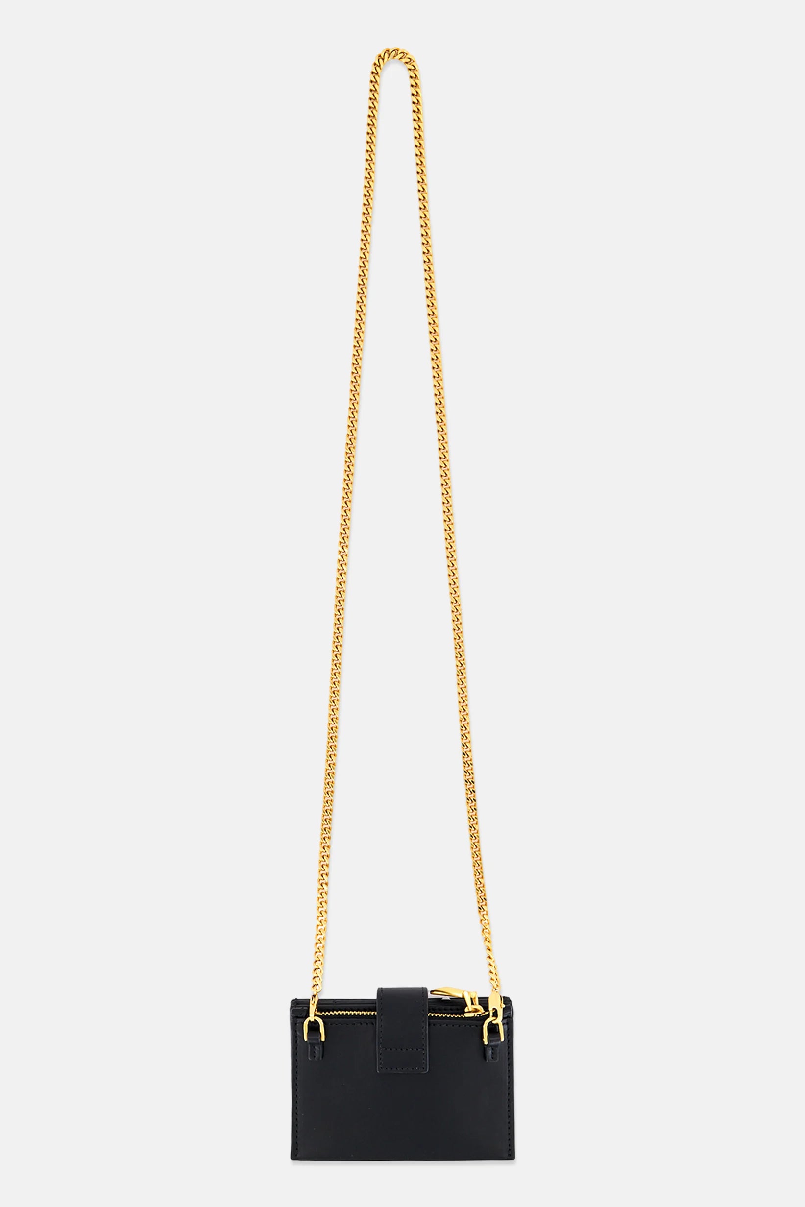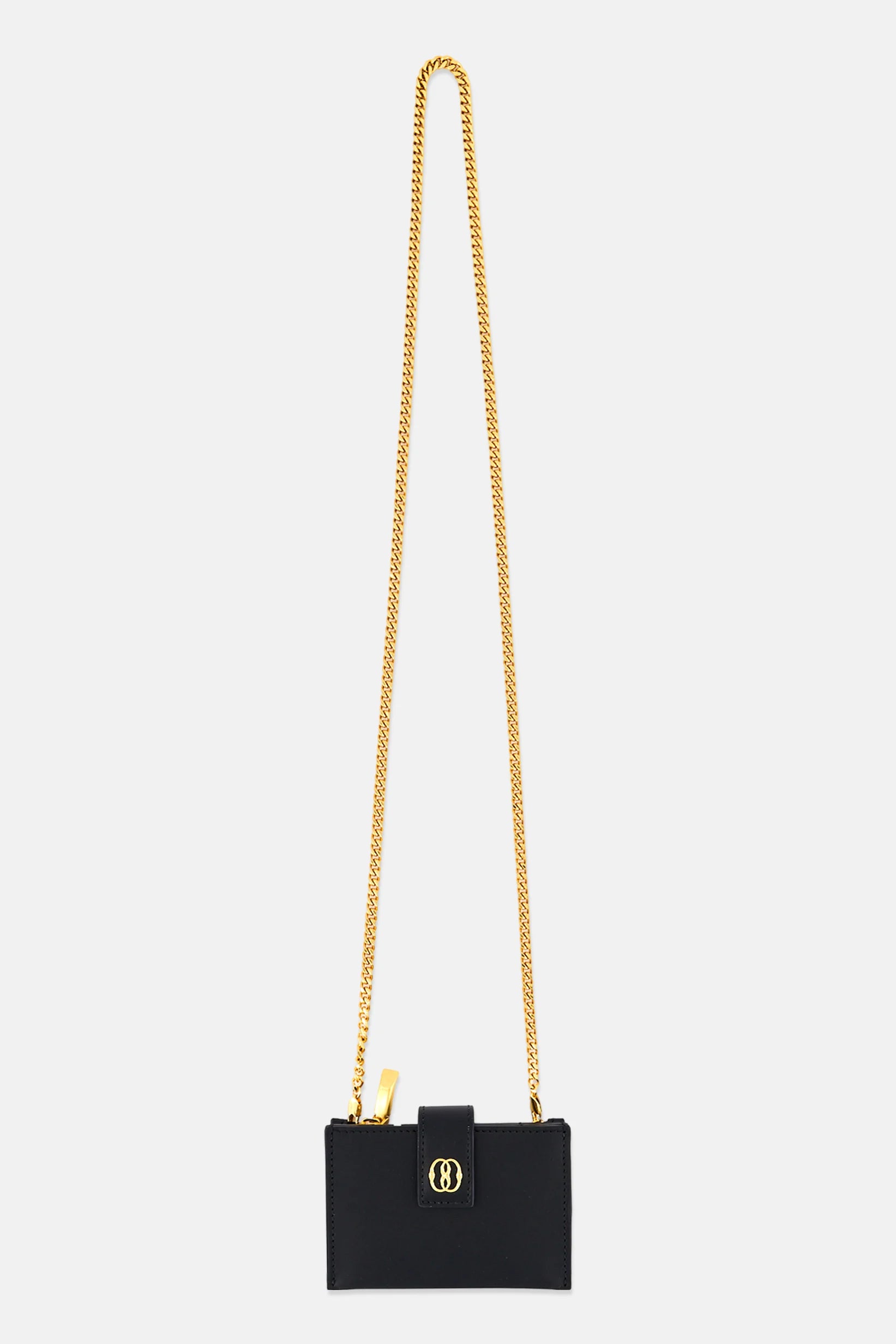 Women Plain Card Holder With Detachable Chain Strap, Black