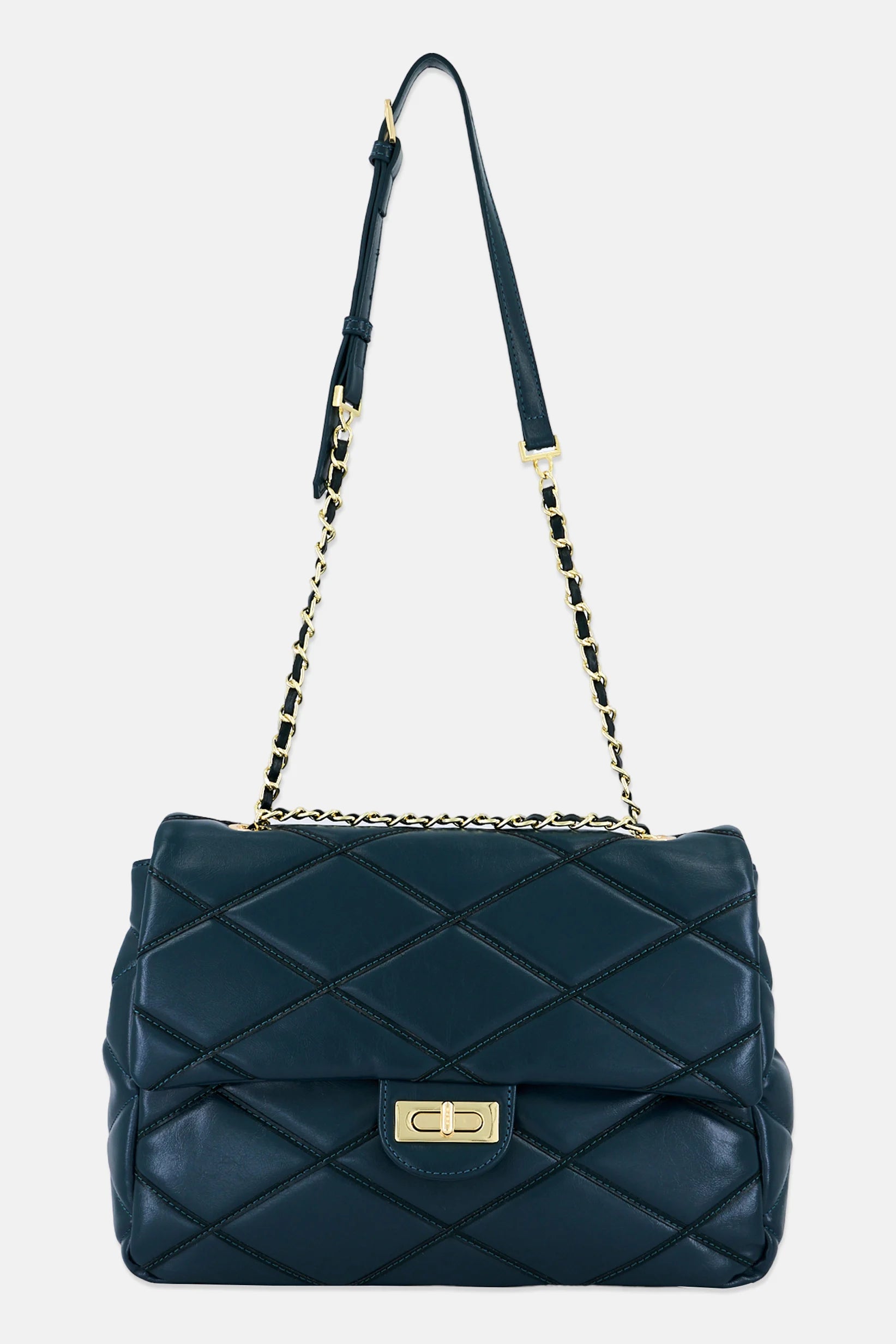 Women Quilted Turn Lock Cross Body Bag 15,4 W x 19,9 H x 31,3 W cm, Teal Green