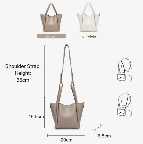 Product features: 1 fixed strap, 1 main pocket, 1 long shoulder strap