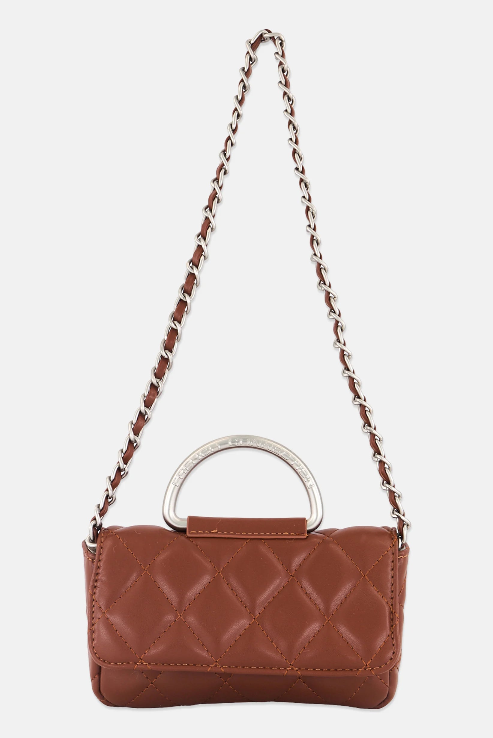 French Connection Quilted Crossbody Bag 11 H x 19 L x 5 W cm, Dark Brown