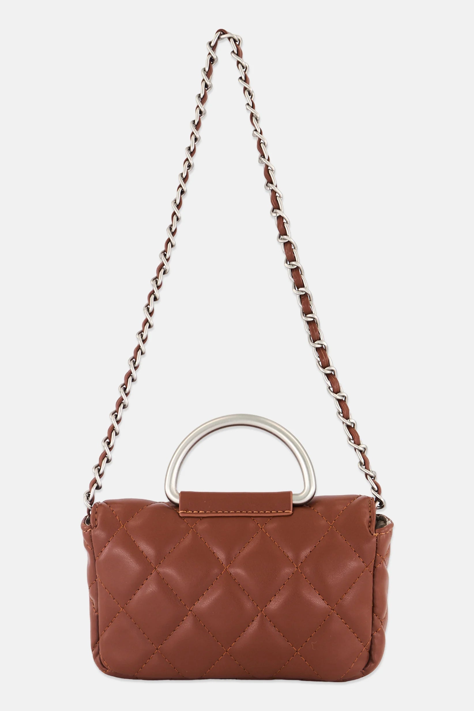 Women Quilted Crossbody Bag 11 H x 19 L x 5 W cm, Dark Brown