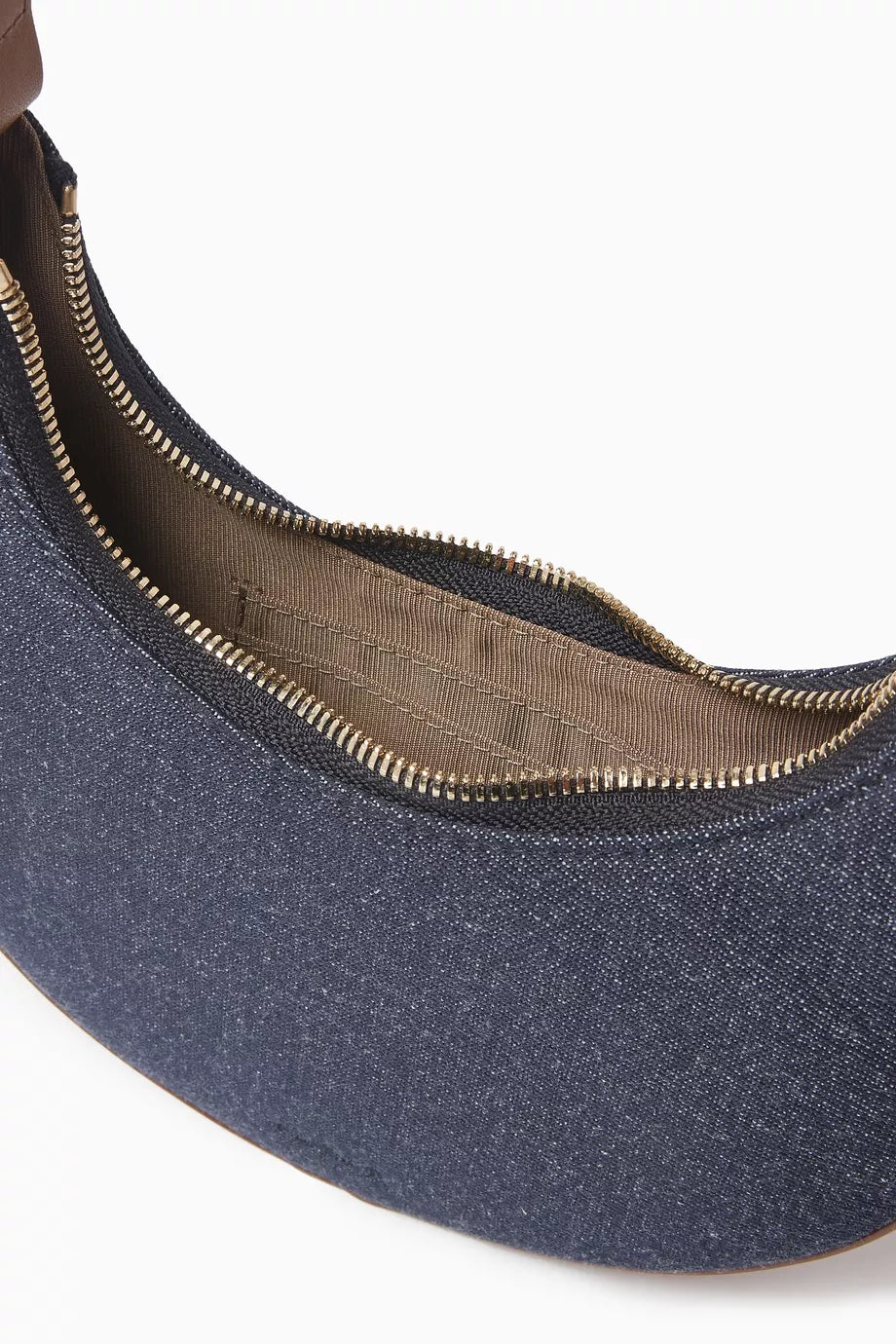 The Mini Delizia Shoulder Bag from Furla brings a playful twist to everyday accessories with its compact shape and denim finish. Designed with a structured silhouette, it features a zip closure and an adjustable strap for versatile wear. Perfect for casual outings or weekend plans—carry it on the shoulder for a relaxed finish.