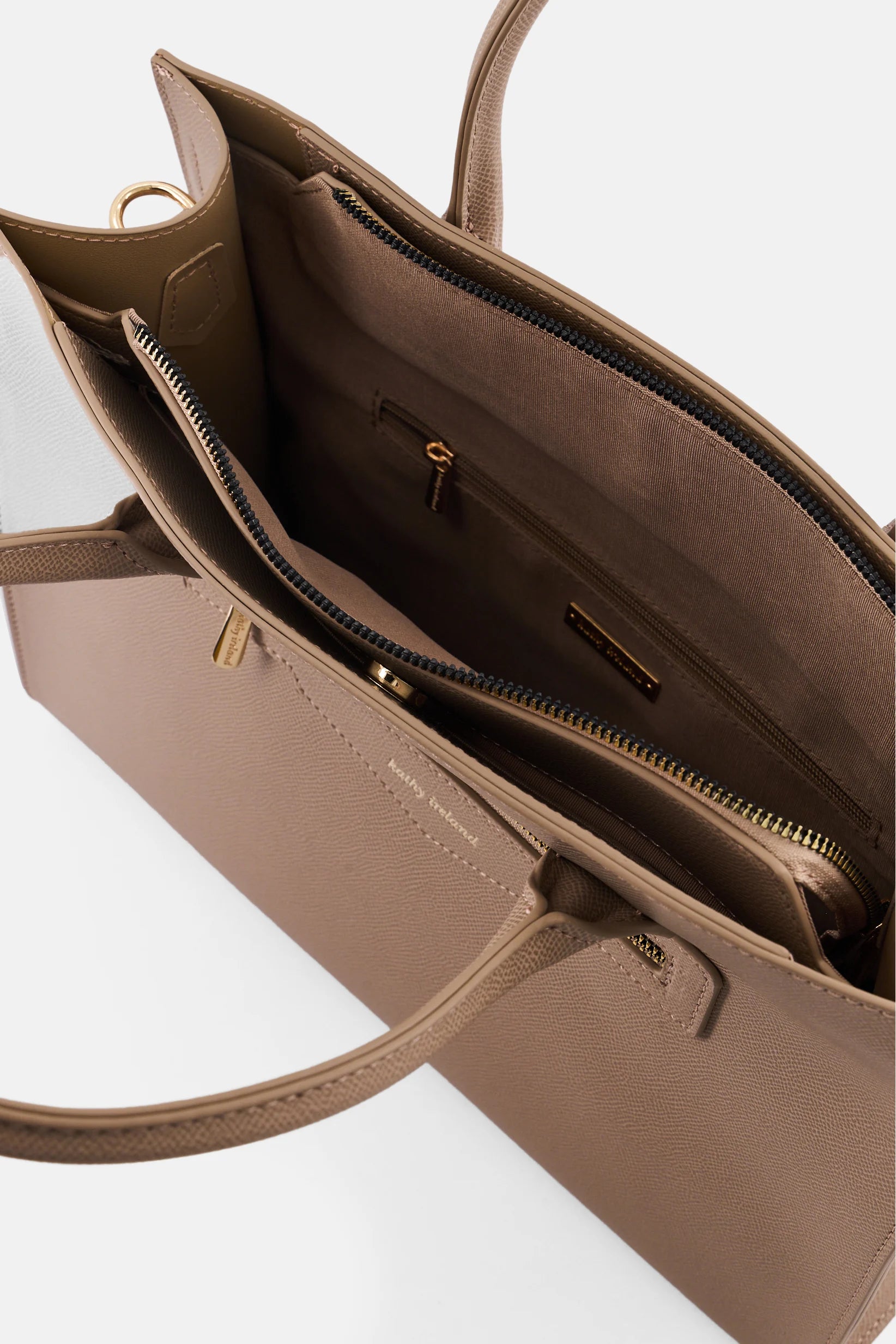 Bag Closure Zipper For Gift Yes Height 27 cm Ideal For Women Length 35 cm Width 13 cm Bag Accents Exterior Pockets Bag Lining Material Polyester Bag Material Polyurethane Bag Strap/Handle Double Handle, Detachable Strap Disclaimer Product color may slightly vary due to photographic lighting sources or your monitor settings., Dust bag not included Pattern & Print Brand Logo Color Family Beige