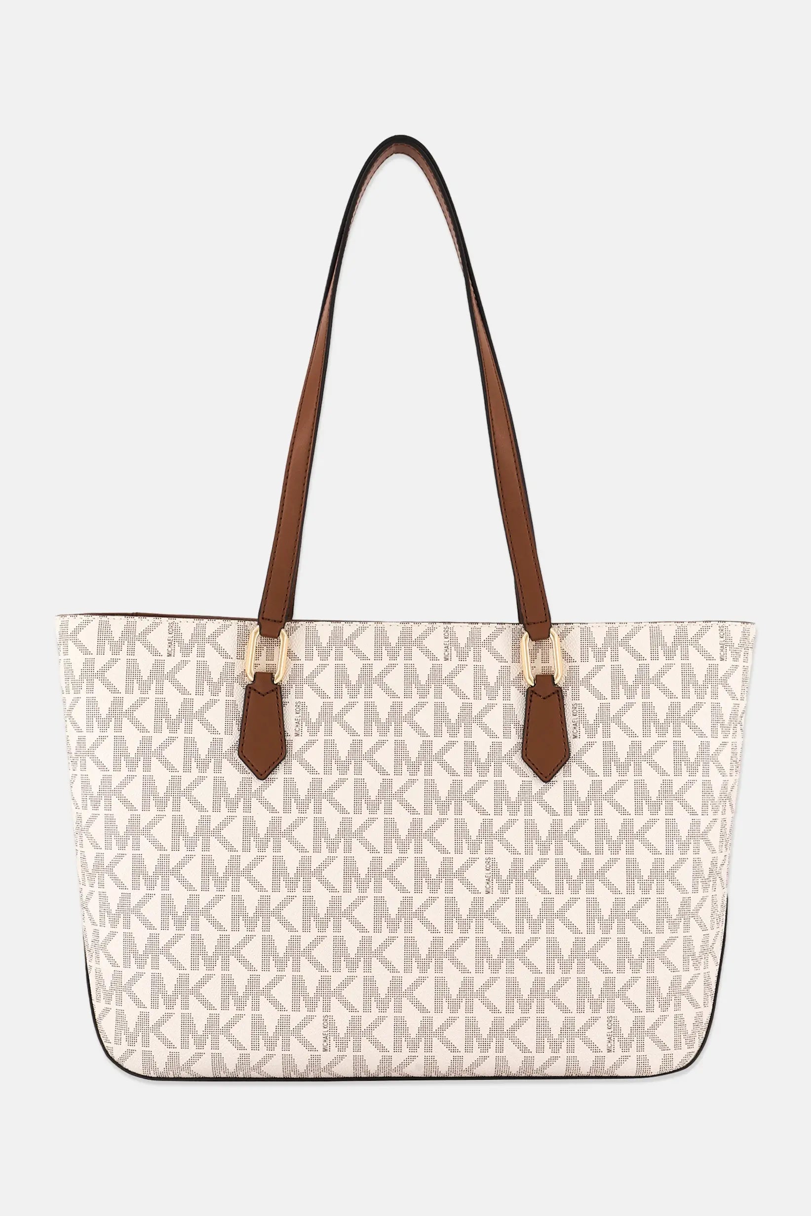 Women Brand Logo Laney Tote Bag 28 H x 38 L x 13 W cm, Brown/Beige