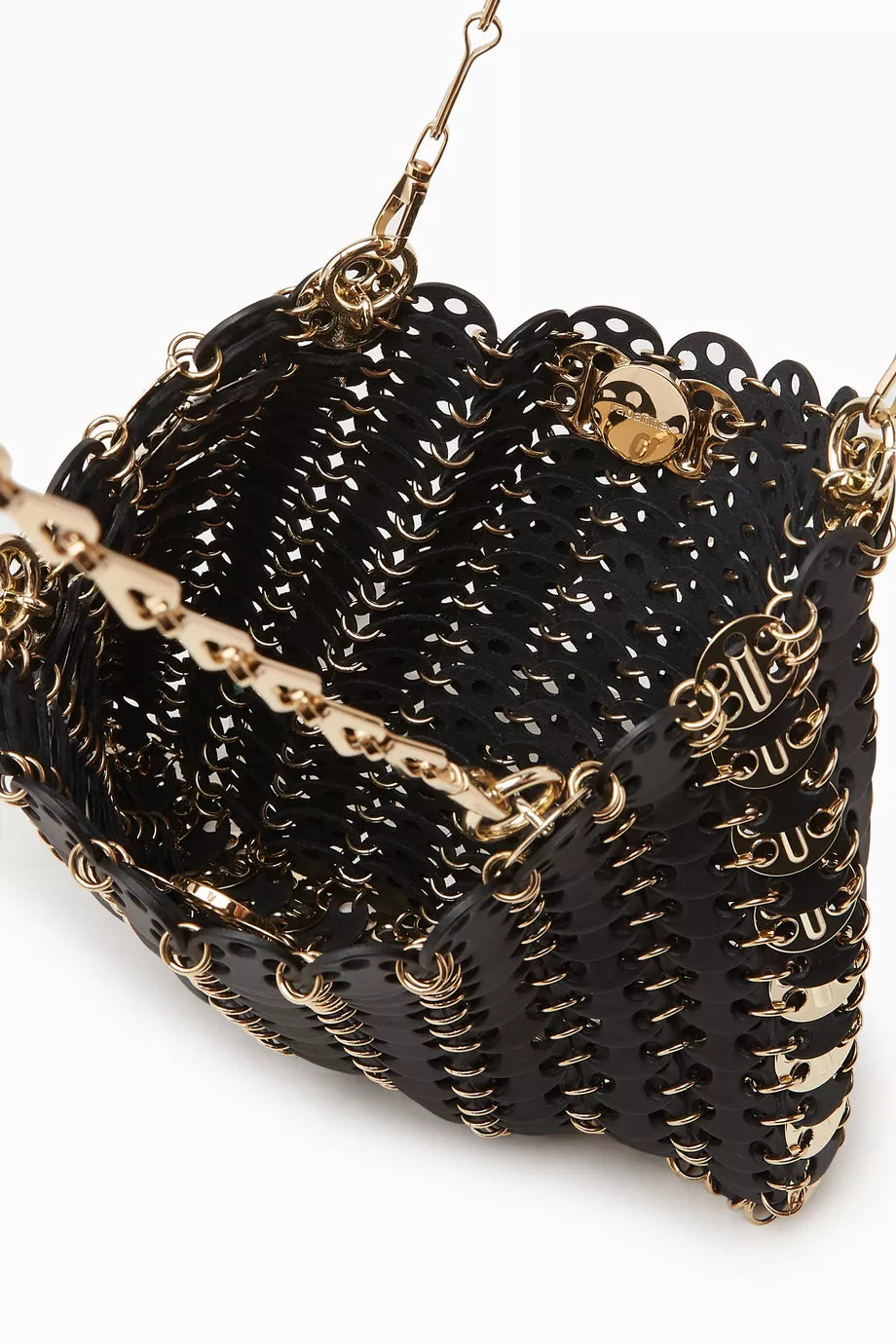 Rabanne delved into the archives to recreate the iconic Le 1969 bag. Meticulously crafted from 163 leather discs and gold-tone hardware, the bag is both experimental and elegant, and will make an impact day and night.